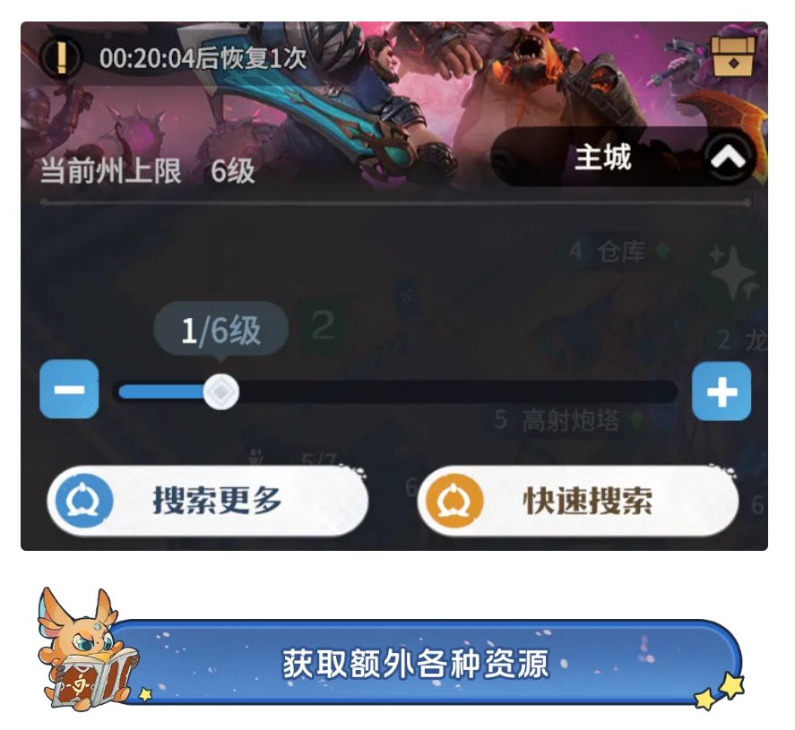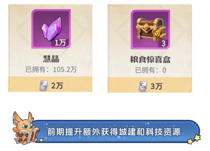 除开上述之外,还有渠道可以额外提升城建和科技资源获取效率: