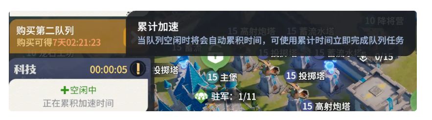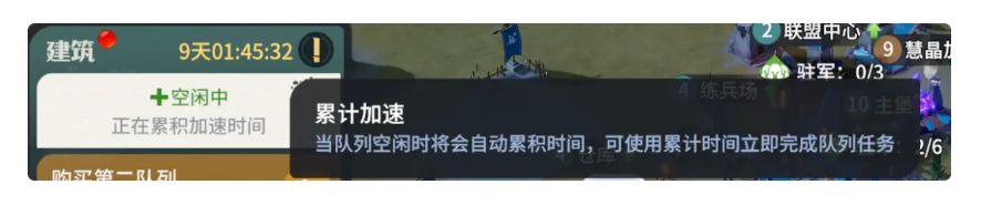 另外,建筑的空闲时间在不升级建筑时会自动积累,不需要一直保证有建筑在建。