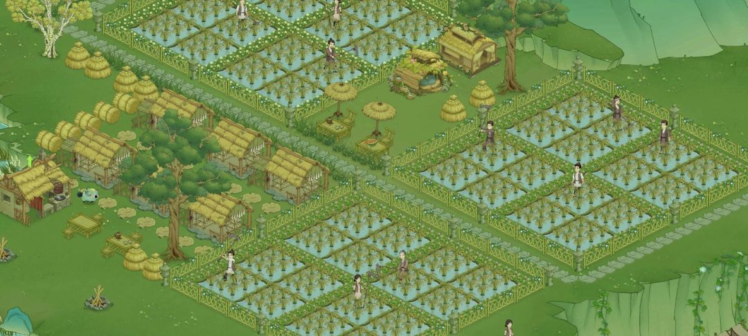 5.右侧大面积平地耕种水稻和糯稻以及蚕室加工,集中式规划有利于播种收割以及管理