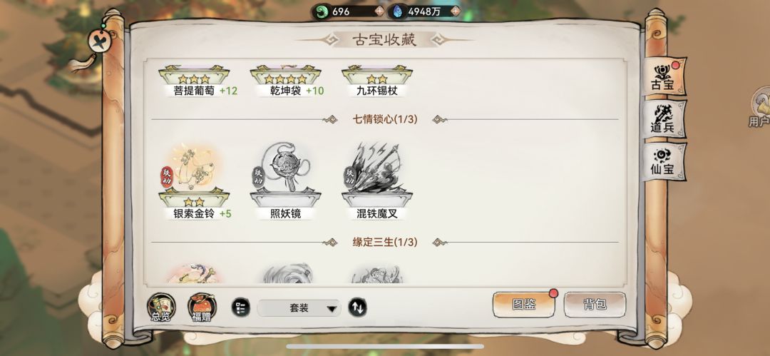 端午节兑换古堡除了上面红宝一套,优先兑换两个青囊经,紫云密简送礼大师兄可以拿一个,圣儒问道测宗门送礼大夏学宫拿一个,这两个都兑换一个,升三星套。(三星套可以2次讲课,这套古宝另外两个散件获取途径太难了)