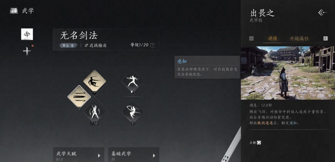 【武学技】:每种武学都有自己独特的武学技,能在战斗中发挥不同效果。有些武学技在发动时还能触发 「感知技」。
