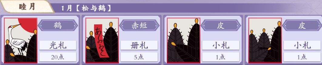 册牌也很好辨认,只需看牌面上是否有红色或者青色的短笺(比如1月的赤短,6月的青短)