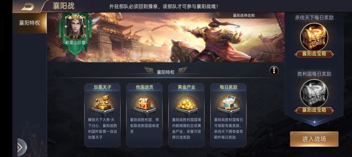 虽然三个国家实力有悬殊,但是襄阳战拿功勋排名也有1000元宝和奖励战将。