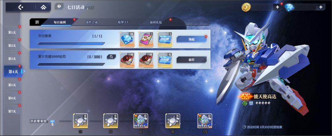 参与七日活动免费领取SS机体【能天使高达】