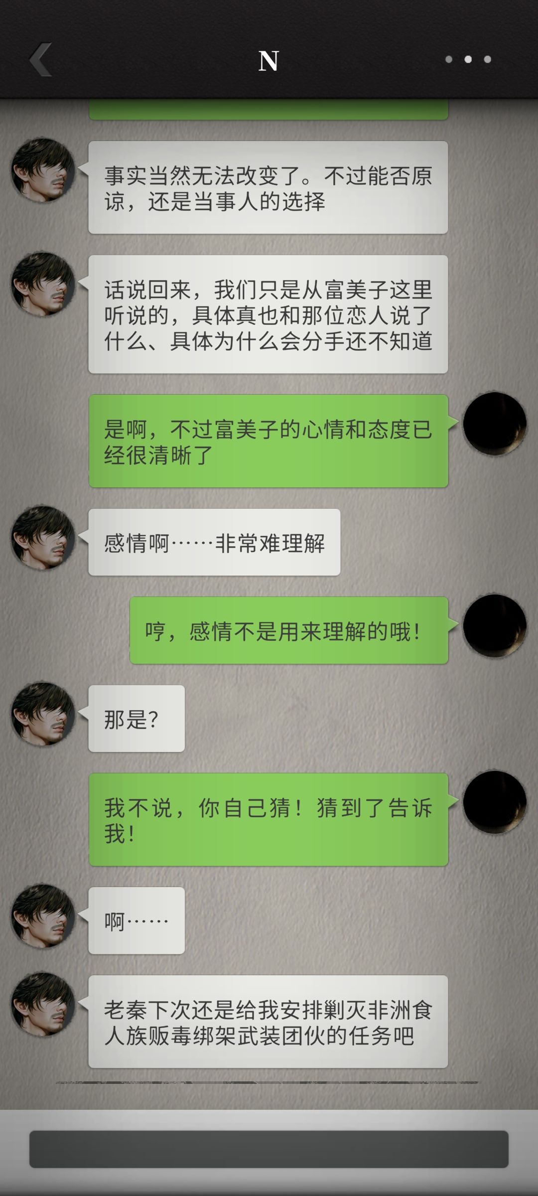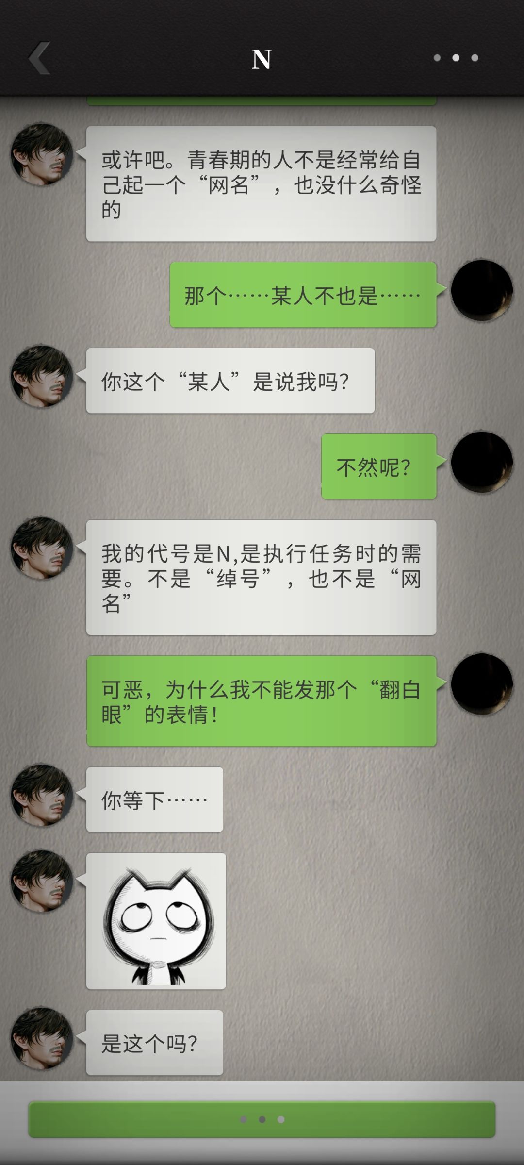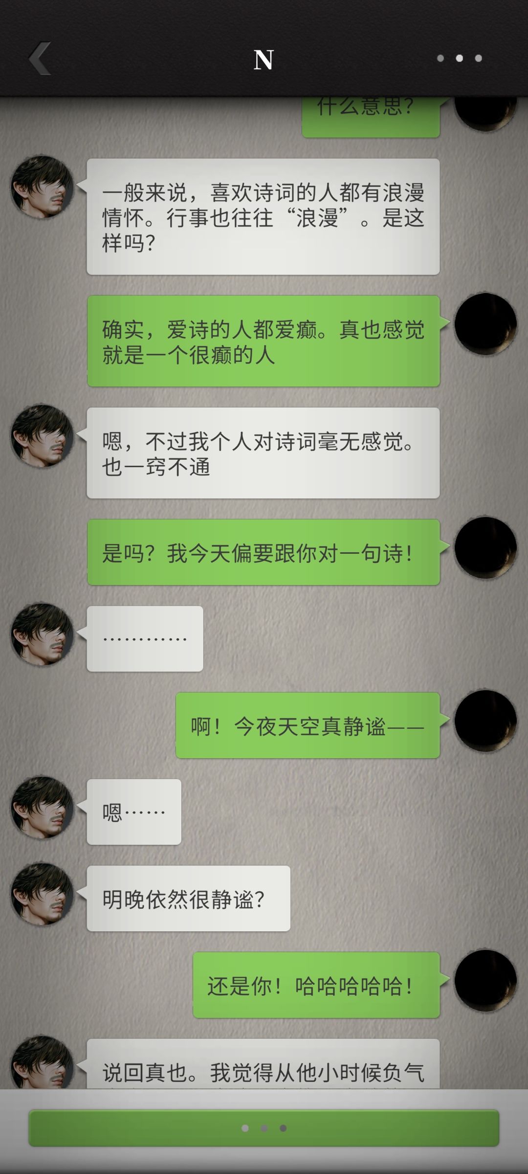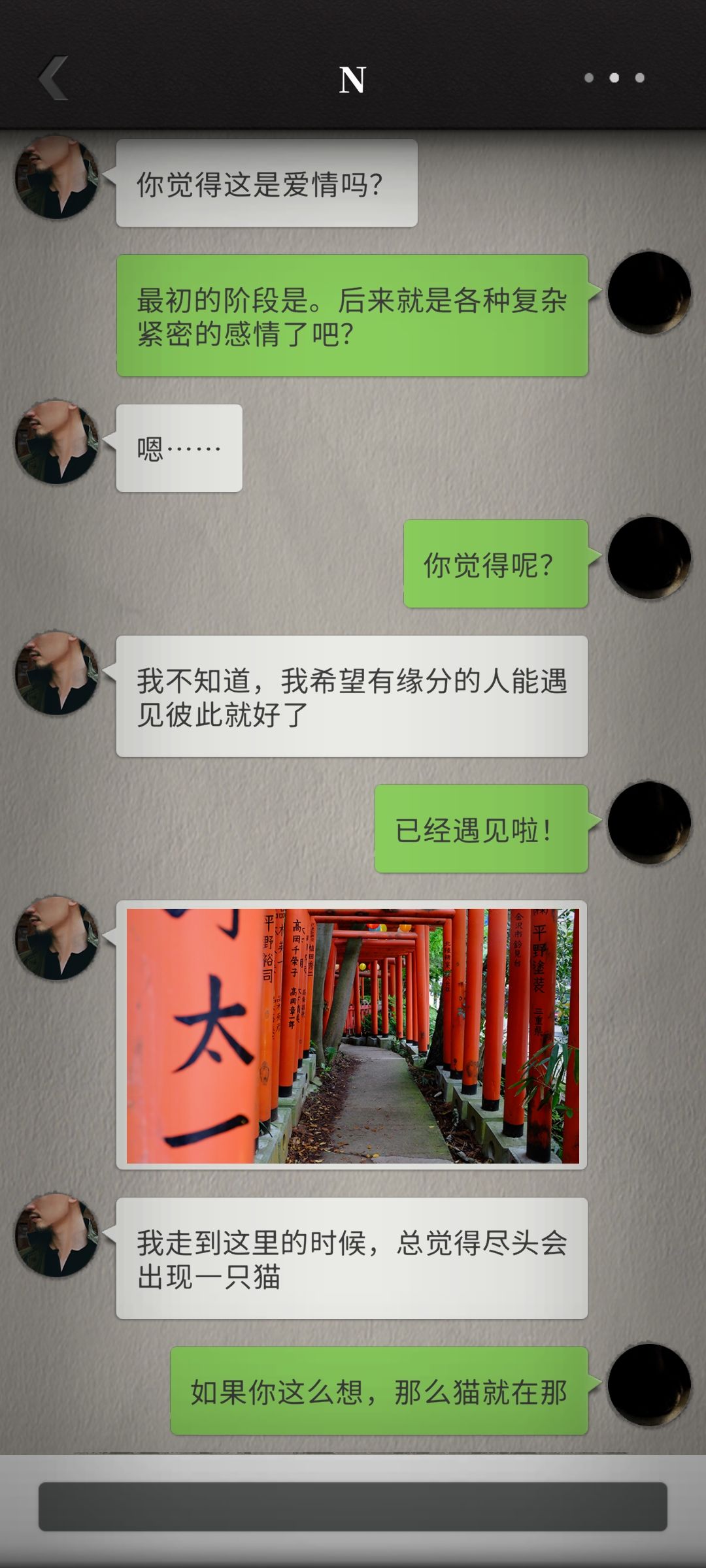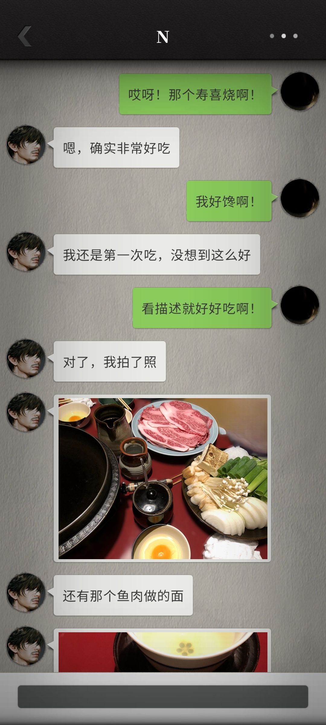 不知为何我好喜欢这种平平淡淡的日常记录,可能是因为和过往惊险故事的反差感,也可能是更贴近现实生活。“不会拍照”的N完全出于个人角度随心拍出了富有独特美感的照片,直线条的N在某些特定境况中反而更接近事物的本质,我有时觉得他什么都懂,但这份朦胧美也不错。随着我们更加熟悉,N真的是在我的眼中越来越可爱,甚至有点皮。这小子已经学会故意发美食照片来馋福喵了,还搁那发表情逗人玩![[表情_生气]](https://img-tc.tapimg.com/market/images/24f2b24c5043d63f5f2db8bd62b8e3de.png)