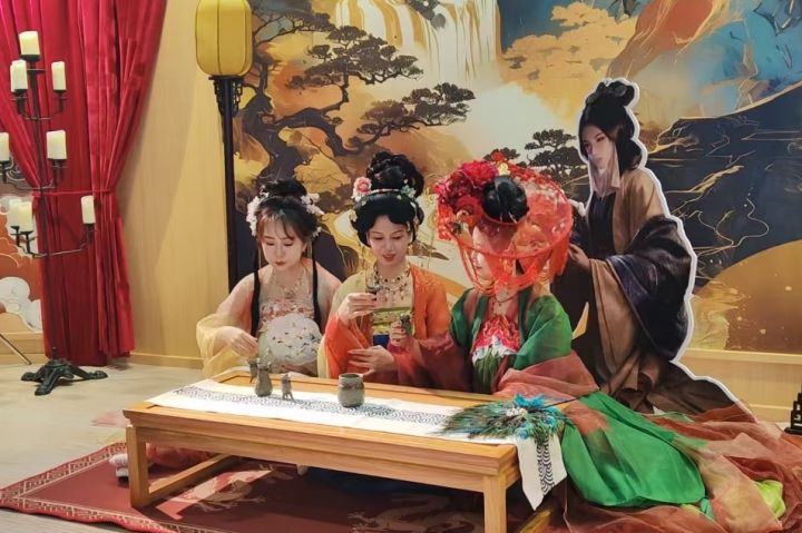 展会第三天,随着古琴声悠扬响起,全场目光聚焦于突然登场的特殊嘉宾 —— 由知名 Coser 唐朝与陈错联袂演绎的诸葛亮、黄月英夫妻档。唐朝身着月白色鹤氅,手持游戏中标志性的 “八阵图” 羽扇,眉宇间透着运筹帷幄的从容;陈错则以改良式曲裾深衣亮相,发髻间的木制发簪暗合黄月英 “工巧大家” 的身份设定。