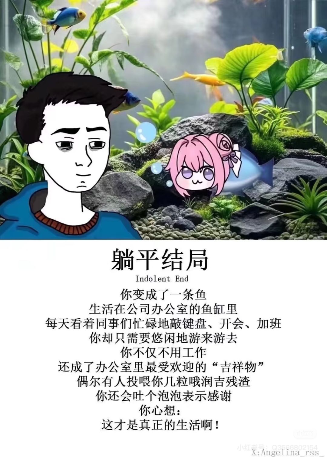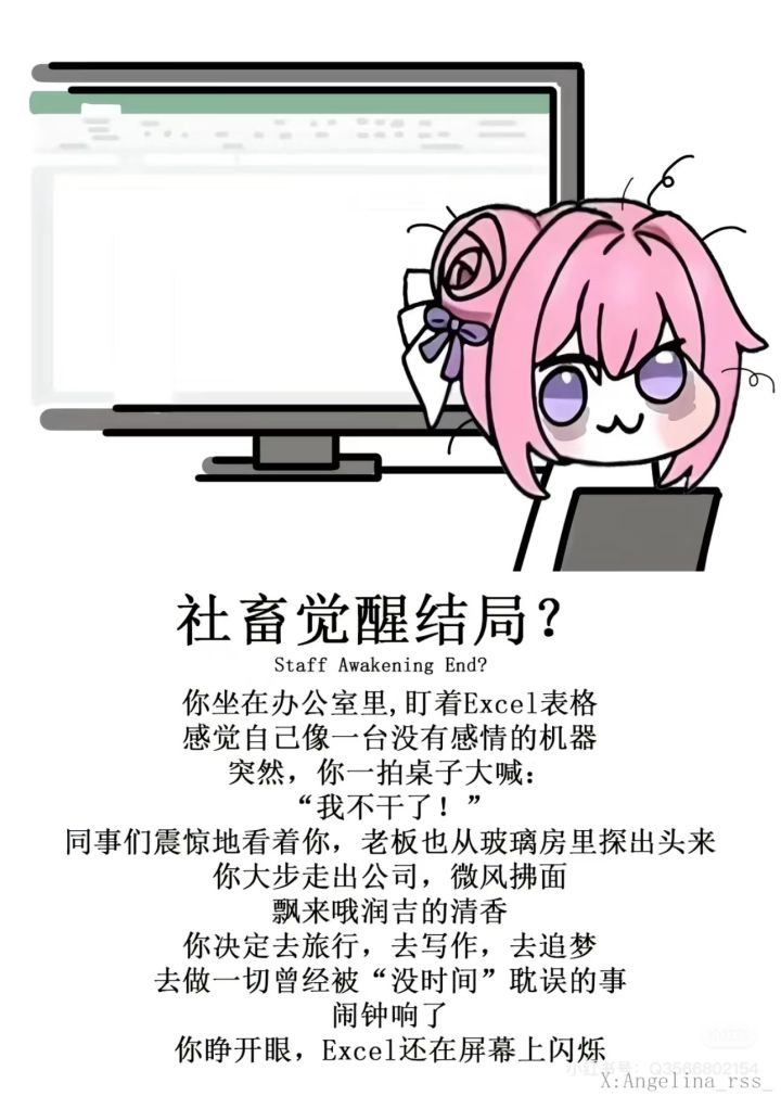 鼠鼠人的具象话,🍊的隐喻~我们需要情绪的出口,即使是一种幽默的,温柔的(有些坏结局真的很坏了)出口……但是即使是人间的那些“来不及”的化身,也没有在集体的手心里被推向自暴自弃或者单纯的愤怒,而是“珍惜眼前人与事”,是给平行世界的ta发过去一张“幸福卡”,这也许才是最大的温柔。反倒是这种温柔真正给我的心里一击“咯噔”(咯噔文学登场)