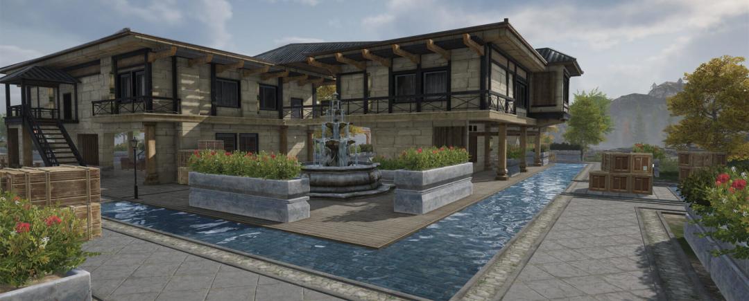庭院南部山坡:一点位锁多个方向,有效阻击从工厂出来的其他玩家,也可伏击从庭院赶往工厂的敌人