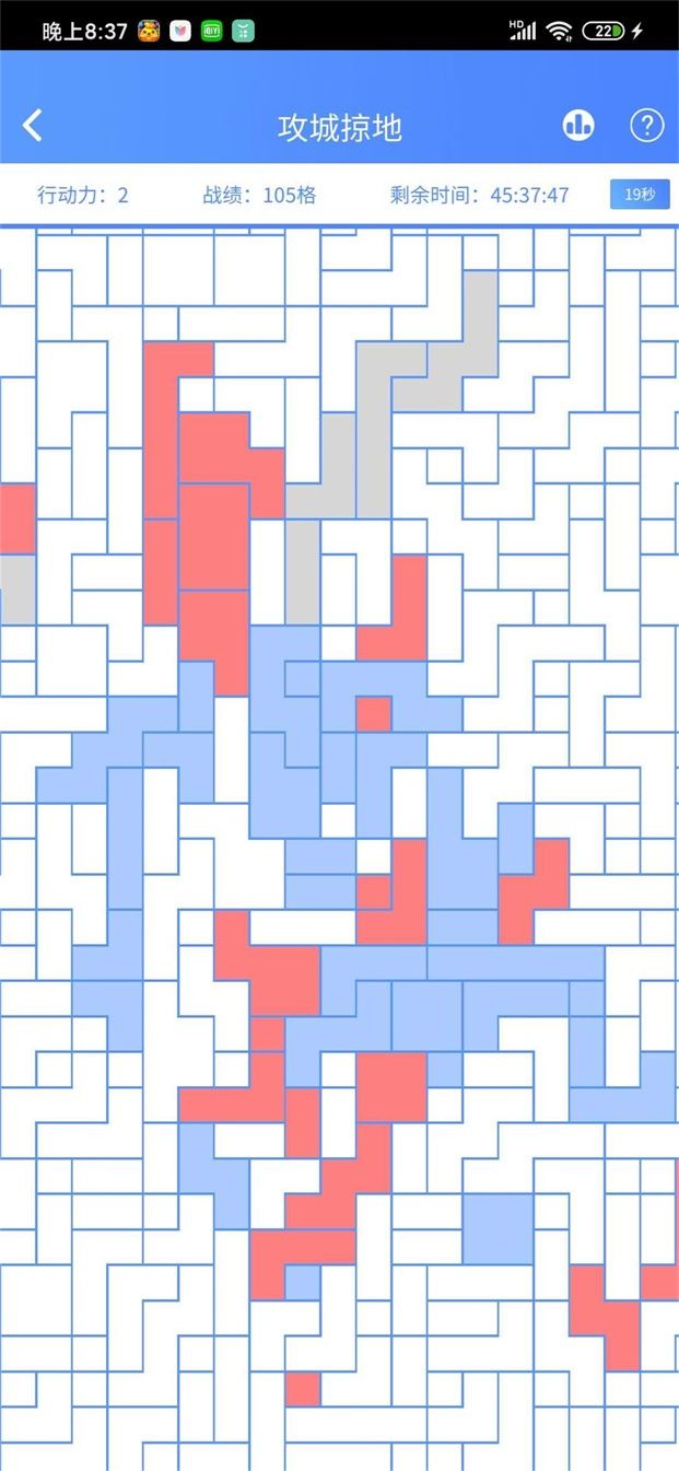 4)金色表示第一名占领的格子,蓝色表示自身占领的格子,灰色表示其他玩家占领的格子,浅红色表示玩家自己挑战过,但挑战失败