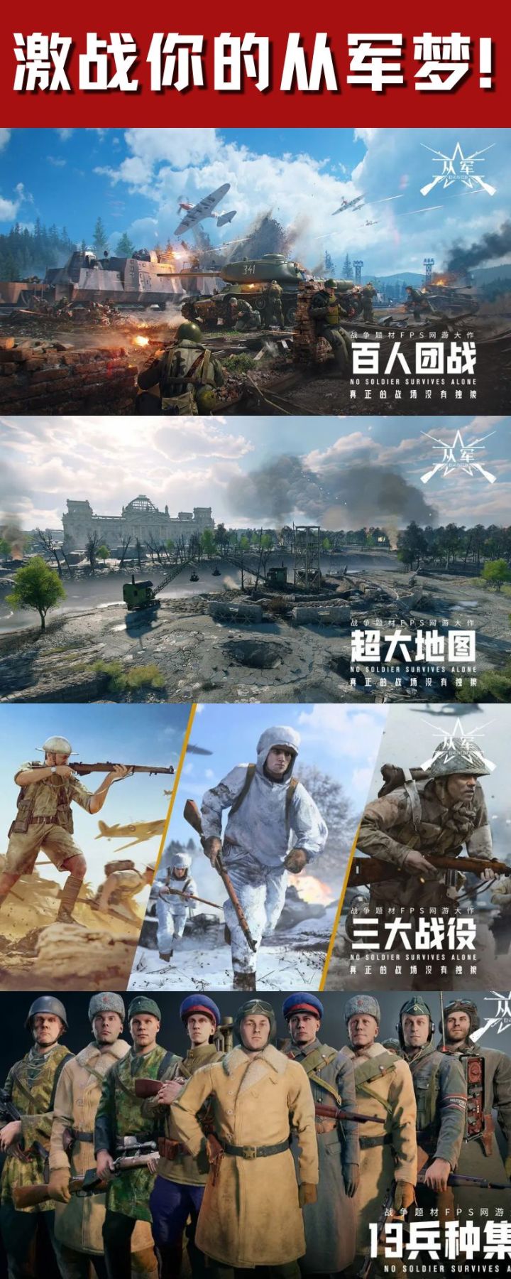 💥 游戏以二战为背景,由知名战争游戏研发商Gaijin Entertainment推出,市面上这种小队统帅题材的游戏不多,从军更可以说是其中的精品,PC端畅玩已经很久,移动版上线概率也很大!喜欢战争类题材的玩家可以预约蹲一波游戏消息!!