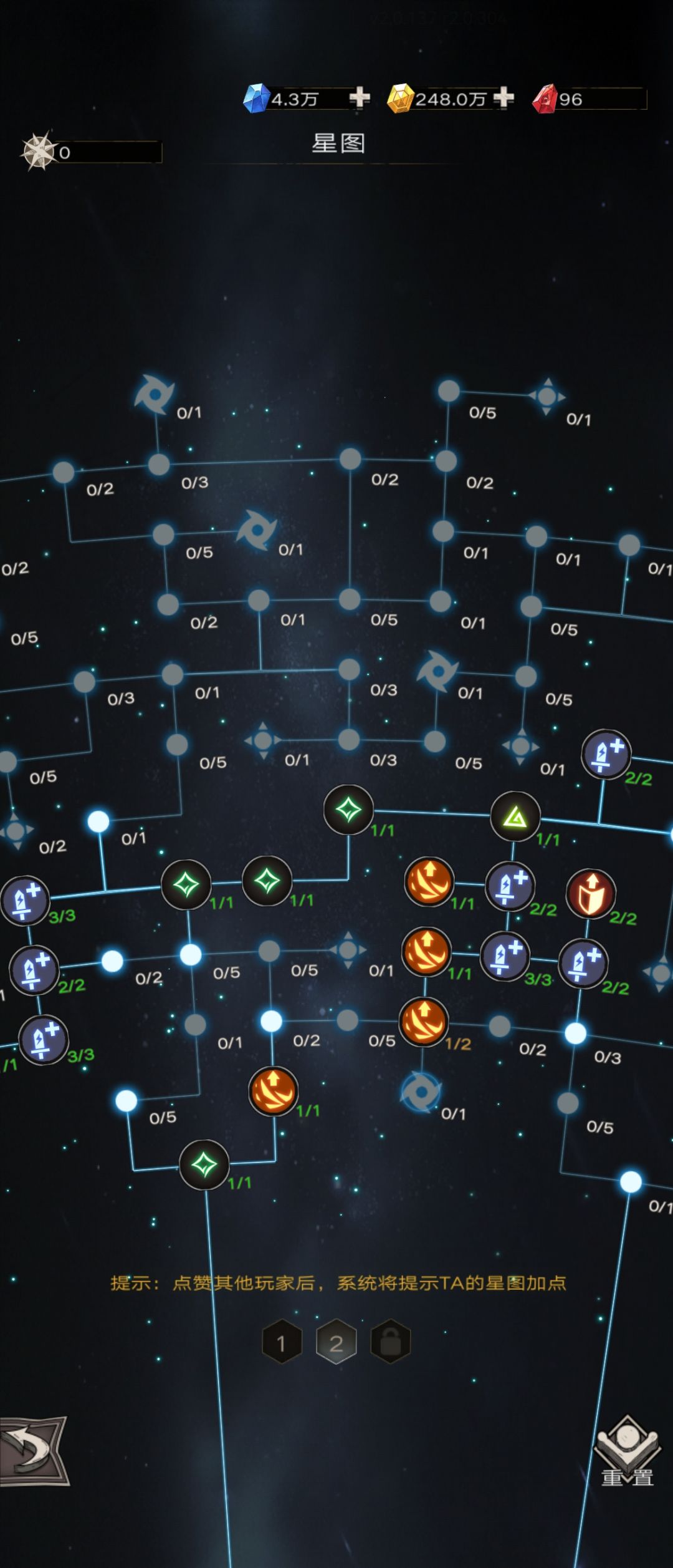 星图优先点出荆轲,刑天,巨人这三个,然后点出护甲提升,根据自己的情况点出一定的格挡率,会心率。