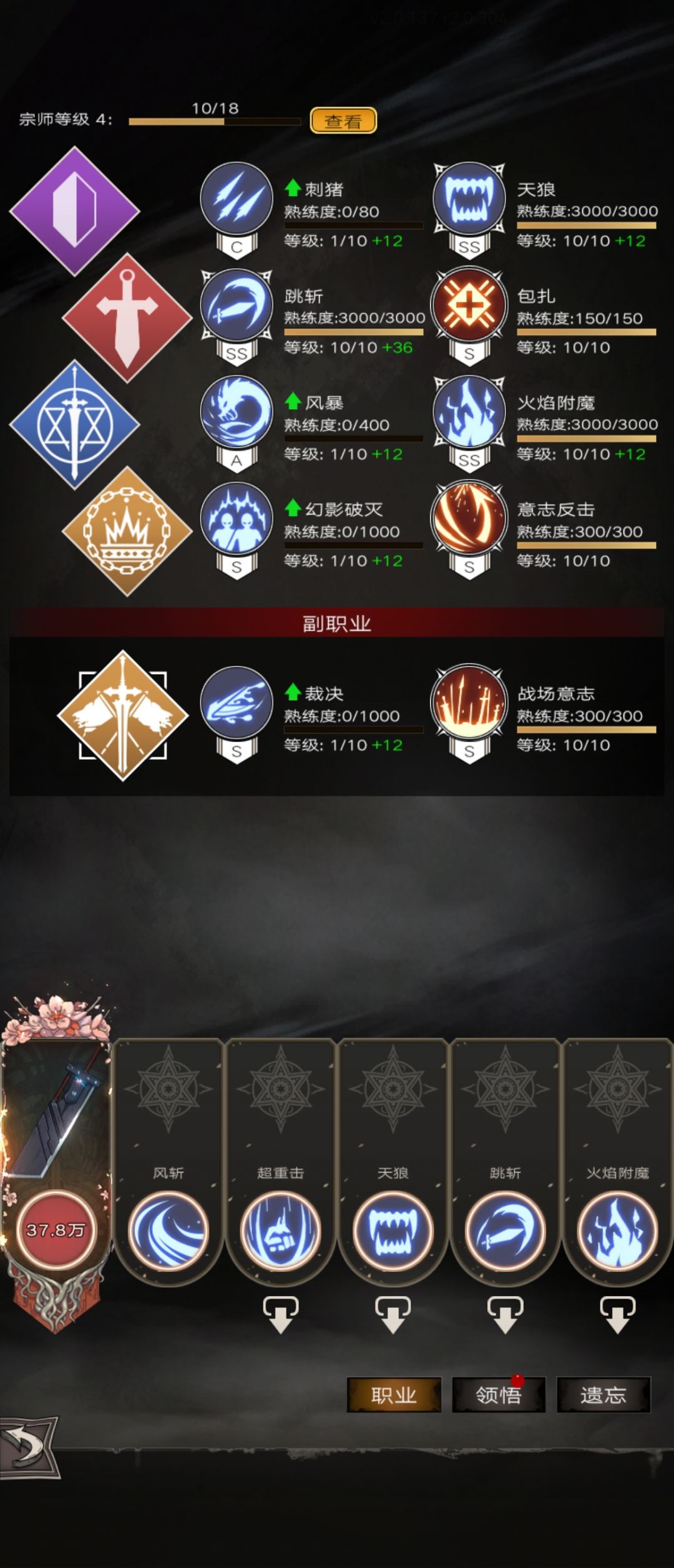 四转意志反击必带,另一个通常情况下选择战场意志。如果遇到首位怪物会变身的情况下可以把战场意志换成器魂。