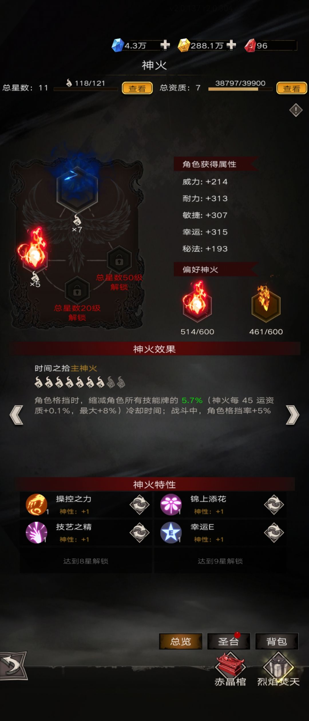 前期哪个高星就把哪个放主火位置多放些神火特性。裁纸刀前期能用的神火特性比较少,基本上是啥加成高用啥。三火的时候可以上个破军。