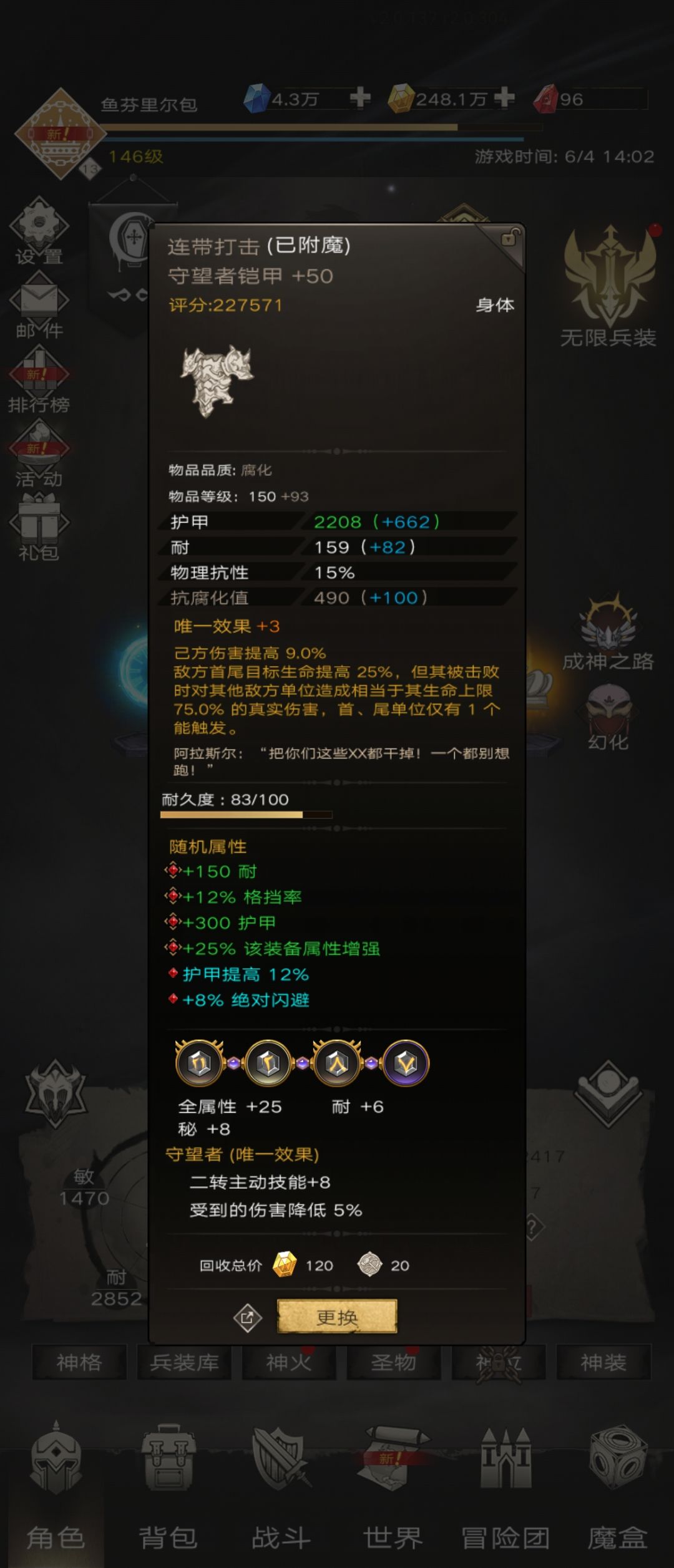 因为是护甲绝地套输出,而且还没开出来六星满超限目前先以护甲加成高的优先升。