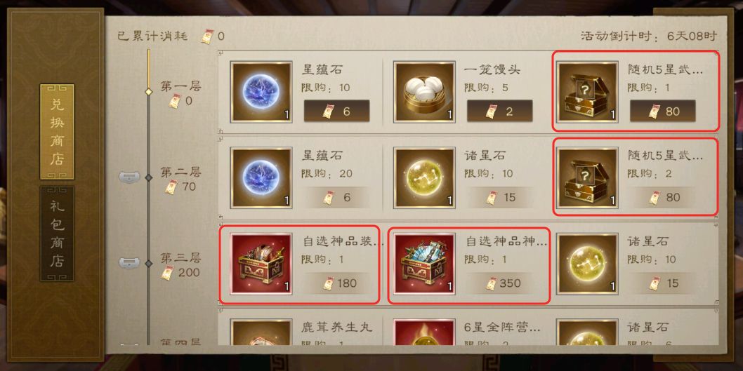 基于【零氪/低氪】玩家的策略,中氪玩家只需确保每次活动能积累500券即可兑换神兵,从而实现每次活动提升一个神兵的目标。