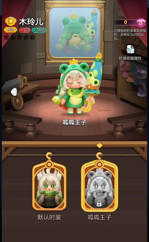 不仅如此,主角木玲儿还拥有一套超可爱的专属皮肤【呱呱王子】!
