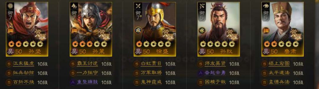 孙权为辅助,给队友叠属性,技能主要给周瑜最佳,没有徐盛时,携带谈心+献图或者谈心+因粮于敌。