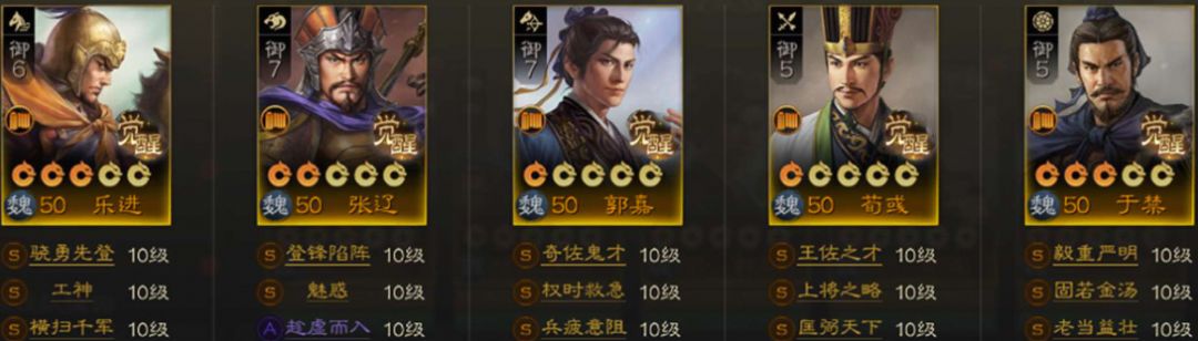 乐进可输出当小吕布打破阵,横扫,也可以走辅助位置,携带奋武扬威+因粮余敌。