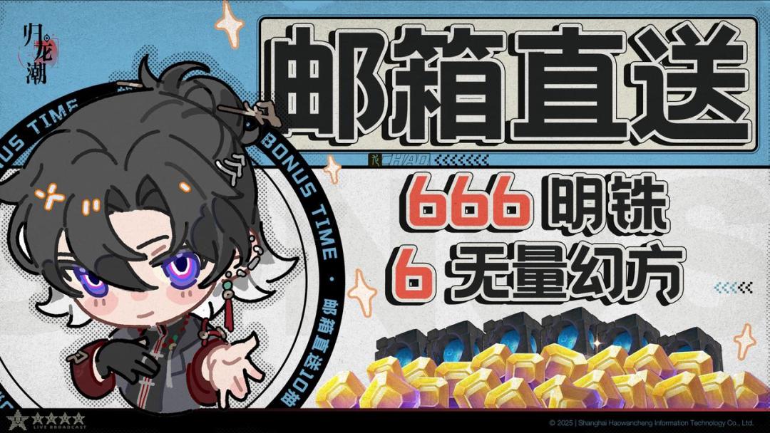 2025/06/05(今天)到 2025/08/01 期间登录游戏,打开邮箱即可直接带走666明铢与无量幻方*6!