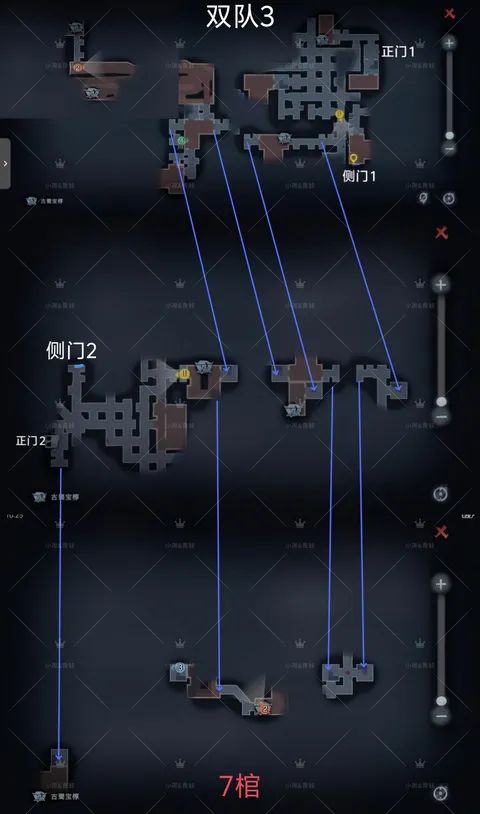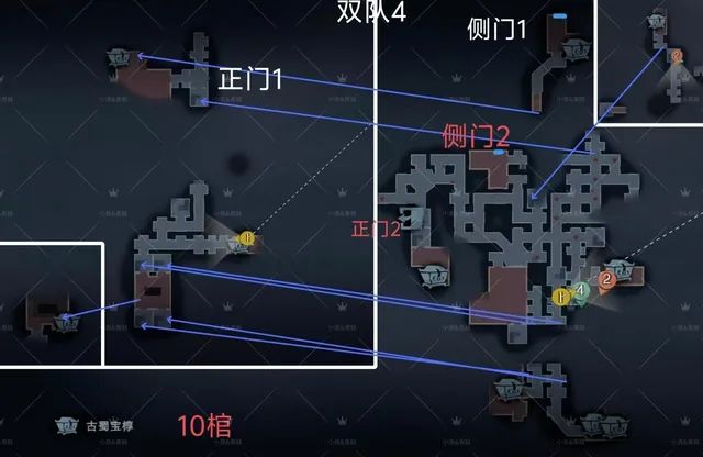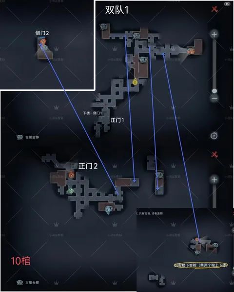 不知道打双队的玩家看见这三张双队地图会有什么想法,正常玩家肯定是先把人打完再开关对吧,为了防止被别人摸屁股,但是我们的传送人就不用管这点,就开局随机传送进去把金棺摸了然后传送回来撤离就行,当然,传送也是一种玩法,所以我们只能在开局拦截对面找不到人后深入他们家一个人守车,一个人守侧门,两个人去龙珠房/峡谷/回房找人,但是就算这样也有被传送玩家直接传送回去的情况,