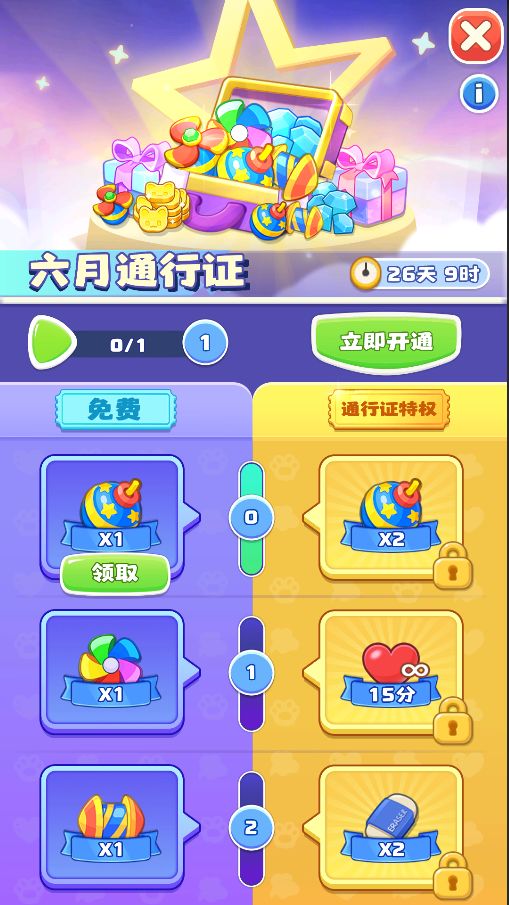 开通通行证,丰厚道具奖励轻松拿,助力畅玩三消关卡!