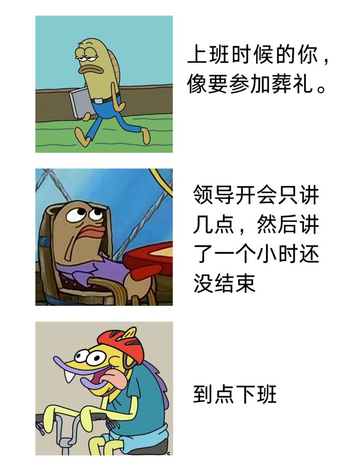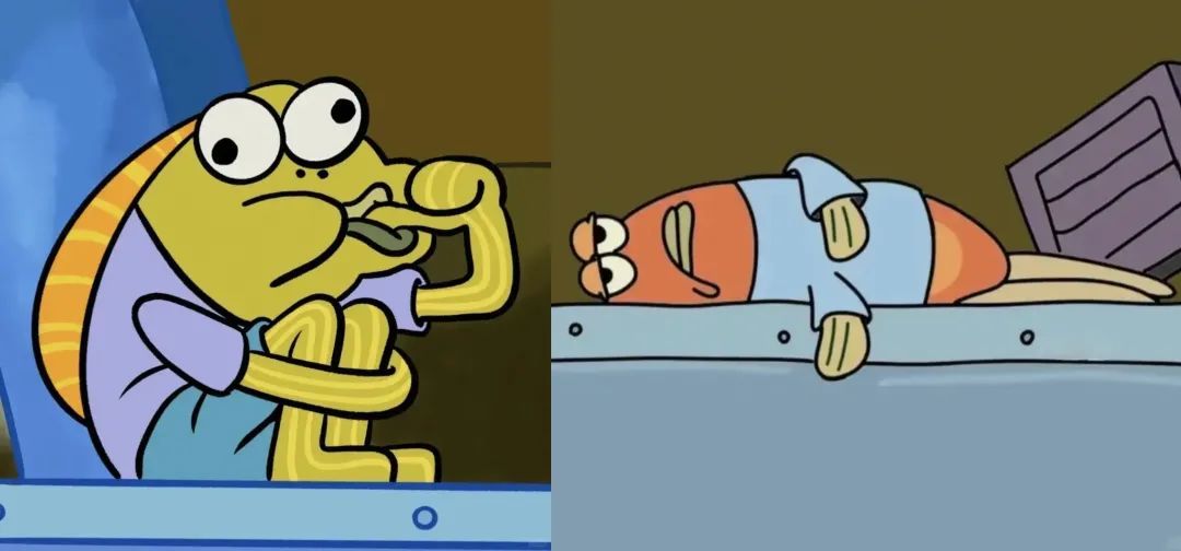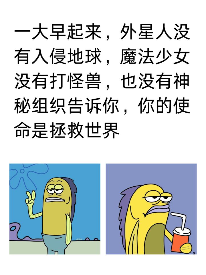 看到瑞幸联动海绵宝宝出了两个路人鱼玩具被抢空的新闻,然后好奇搜了下比奇堡丑鱼,发现这里面的表情包素材都太有意思了hh,所以做了几个梗图。