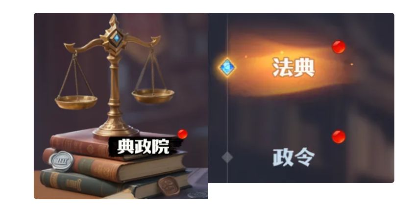 内政的典政院中的法典需要升级,以及记得使用政令。