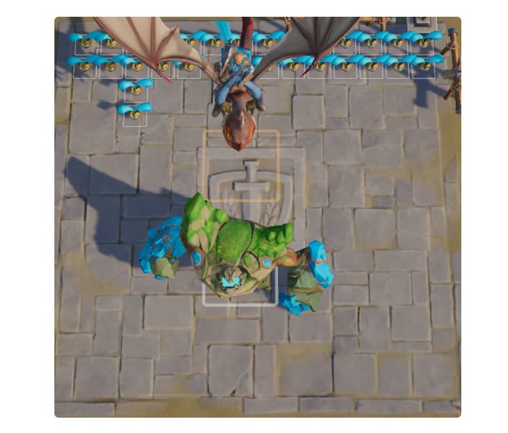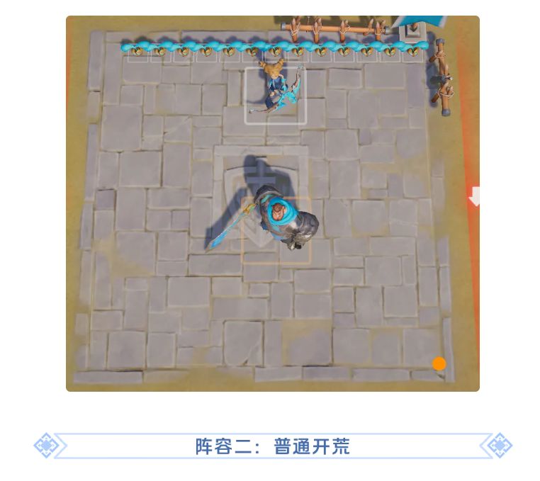 站位:如下图所示,让奥索德/哈罗顶到最前吸收伤害,安德瑞娜/托尔和巨力橡果在后排安心输出即可。