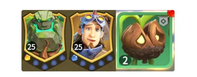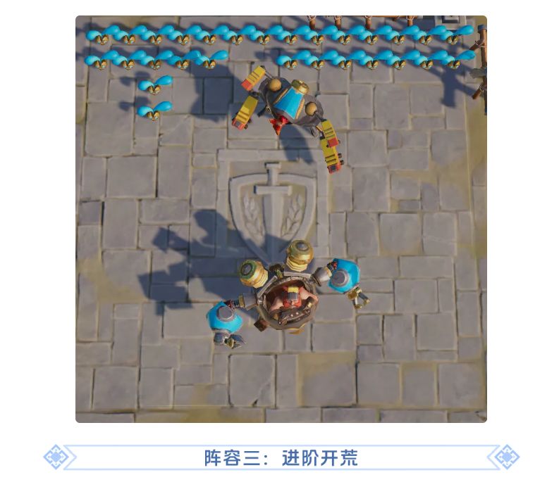 兵种:主力巨力橡果+少量丧气石人。这个组合也是兵种组合中生存和输出最全面的阵容,能应付大多数情况。