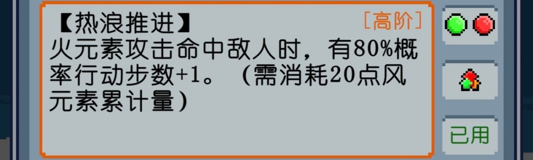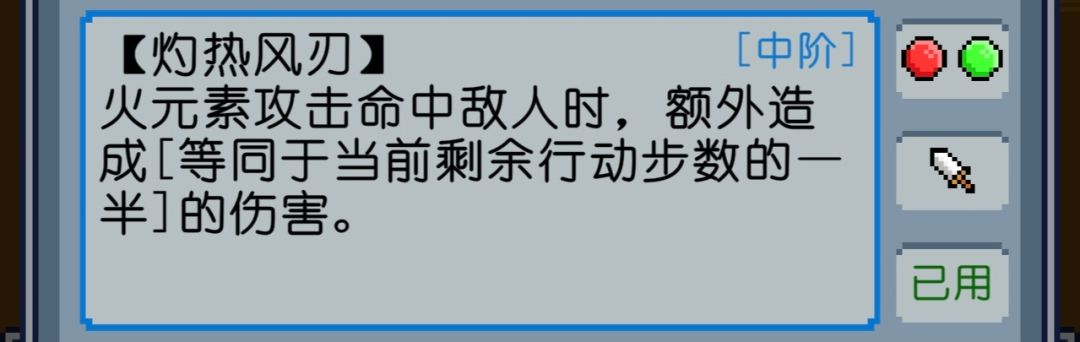 T1.5:灼热风刃(步数越高伤害越高,配合热浪推进,直接通关。因为配合热浪推进提升0.5个级别)