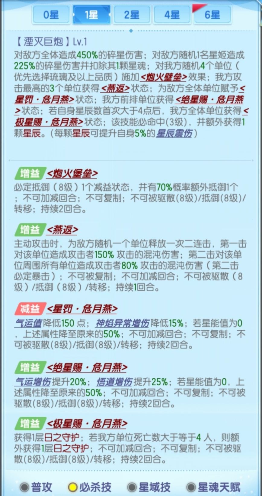 6.星姬伤害只受继承属性,与战斗中的“星辰震伤提升/降低”、“碎星增/减伤”影响。