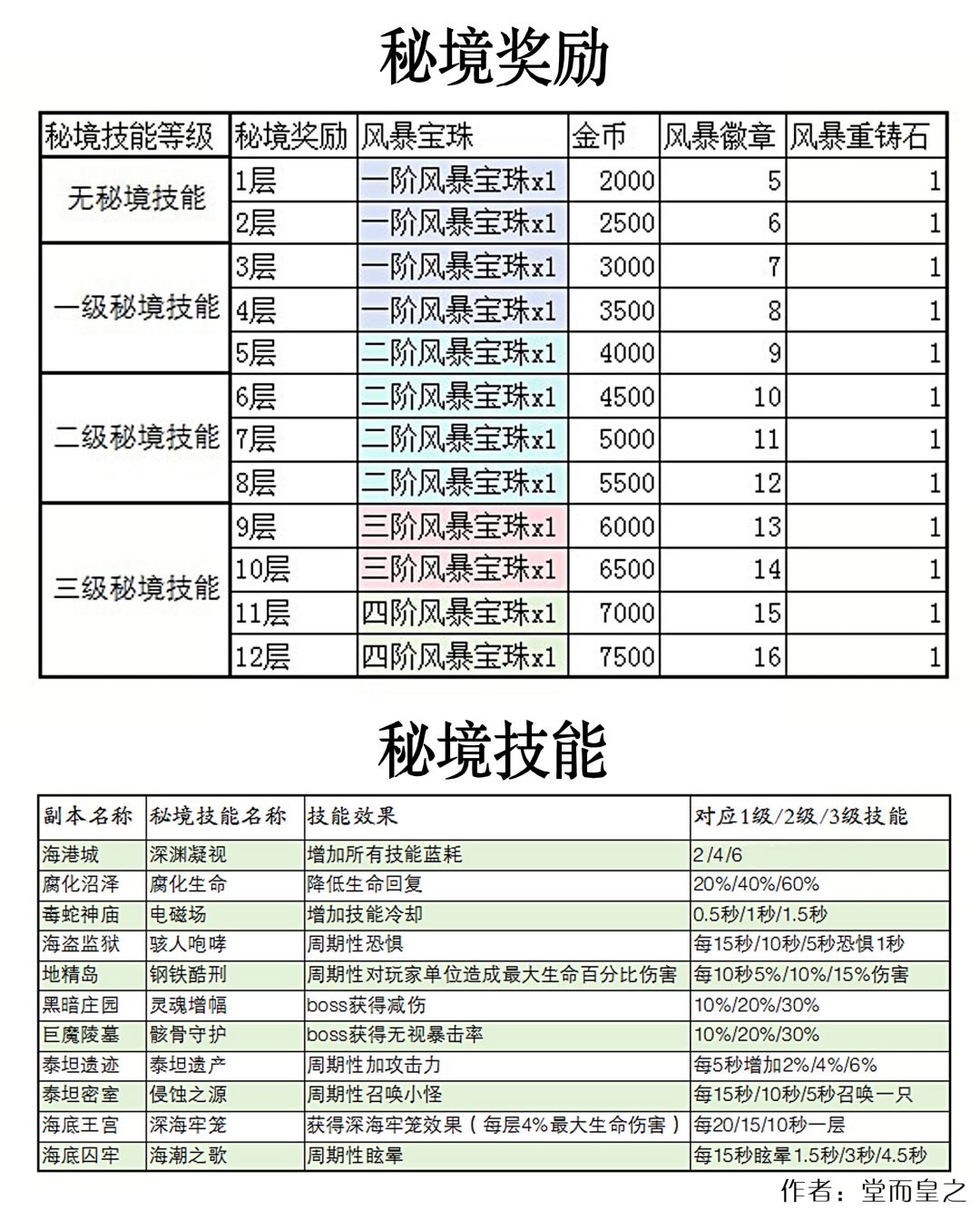 秘境奖励和技能一览