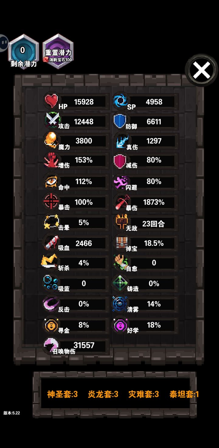 ▶玩家命中率平均每100层降低5%,闪避率也会降(具体没记录)