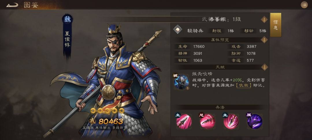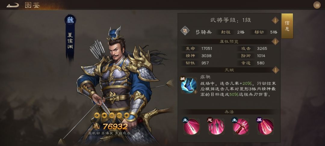 骑兵推荐:夏侯惇和关羽,夏侯惇是游戏中单体输出最强的英雄,无论是PK还是打桩都是非常不错的选择,缺点就是没有群体伤害推图比较乏力,关羽是仅次于吕布的骑兵,不仅输出爆炸而且击败敌军后还能继续行动,无论是PK还是刷图都是非常不错的