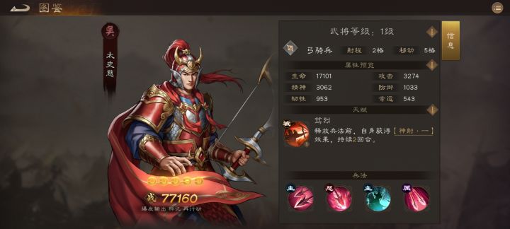 游戏内有四个阵营分别是群雄和魏蜀吴,一共可以上阵五个武将,开局抽卡一般是在黄忠,夏侯渊和太史慈中随机出一个,抽中哪个后期就升哪个,我开局抽中太史慈,所以一路就升太史慈了,另外四个武将推荐一骑兵,一法师,一奶妈和一肉盾