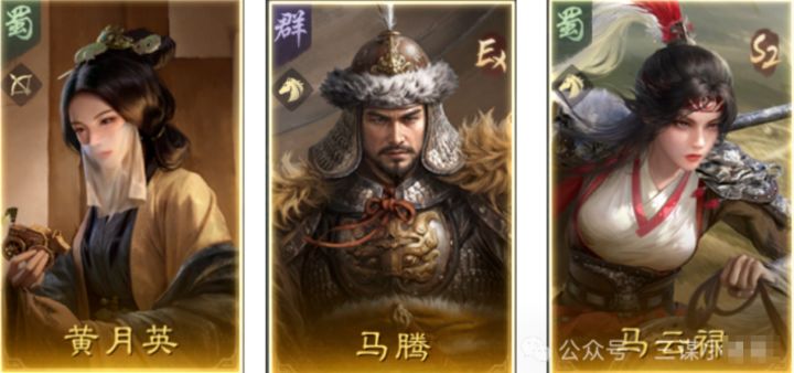 第二队黄马马(马妹队),核心优势是马云禄高爆发,且环境因薪火枪压制赵云而得到改善。武将配置为黄月英携带无难之志 + 避其锐气,一速后智加点,装备智统(先御/磐石/神速);马腾携带挫锐折锋 + 舍生取义,全统加点,装备智统(先御/铁壁/君临);马云禄携带铁骑横冲 + 锐不可当,全武加点,装备武先(打磨/神射/穿云)。阵法选择方圆阵,马妹需一定红度,黄月英速度要优先于马云禄,SP诸葛亮在双马队中性价比低,不建议占用。