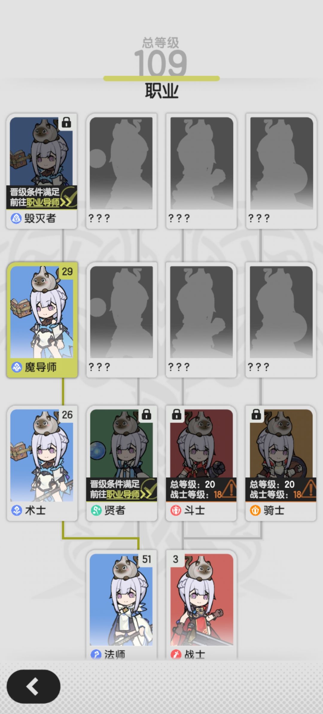 以下图为例,职业共分为术士,贤者,斗士,骑士。