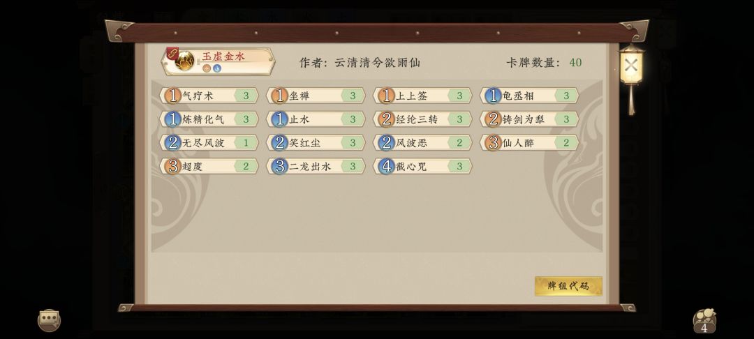 组件是有些多了,但还不够40张,加些滤抽卡,以及坐禅防压修,仙人醉持续回复。