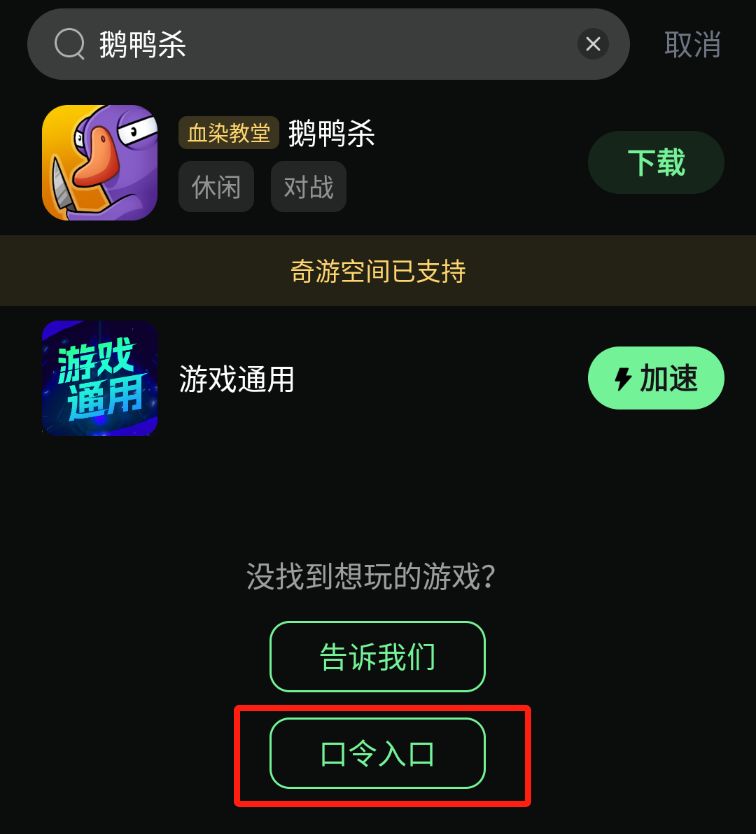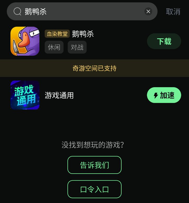 第三步:在奇游内搜索【鹅鸭杀】即可下载游戏