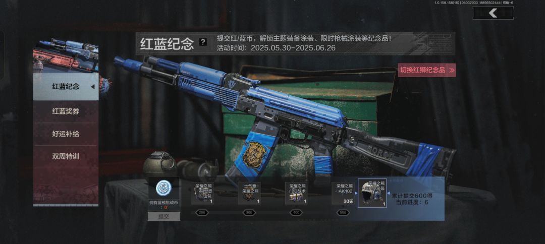 同样,活动期间内提交蓝熊挑战币达500即可领取荣耀之熊·AK102(30天体验),蓝色是男人的专属浪漫!