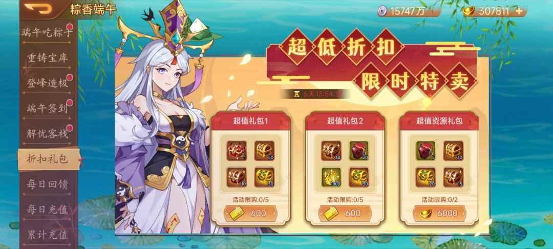 活动内容:活动期间,超值礼包限量折扣出售。