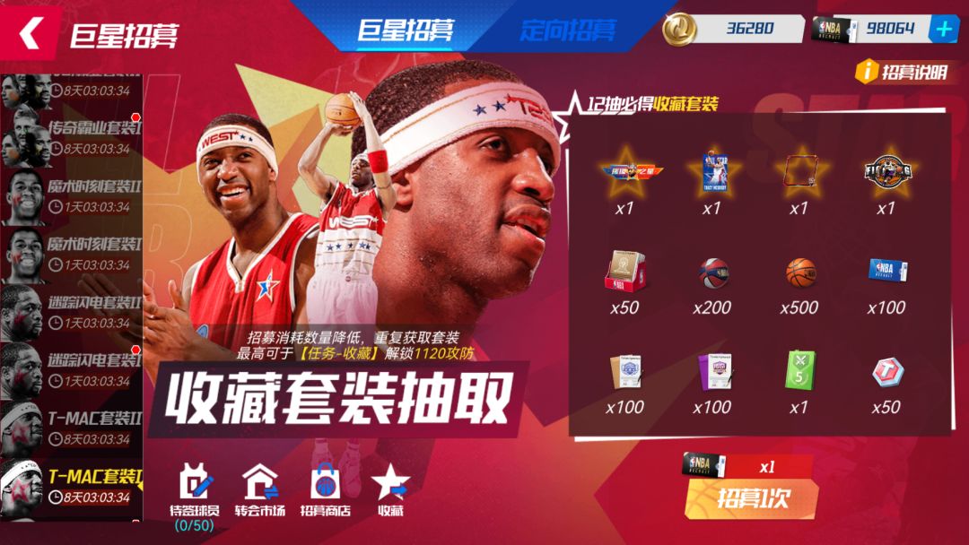 活动期间,可使用【精准招募函】在【精准招募-T-MAC套装卡池I】、【精准招募-T-MAC套装卡池II】池中,抽取全明星麦迪外显套装!