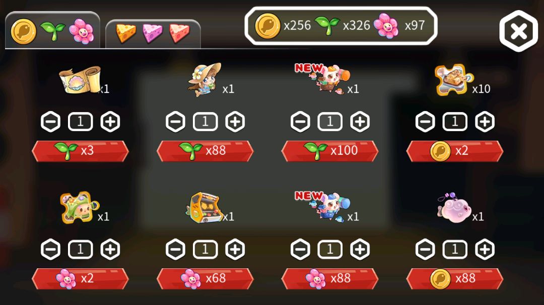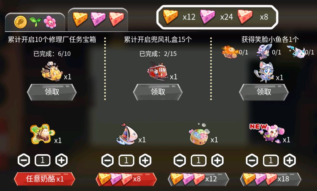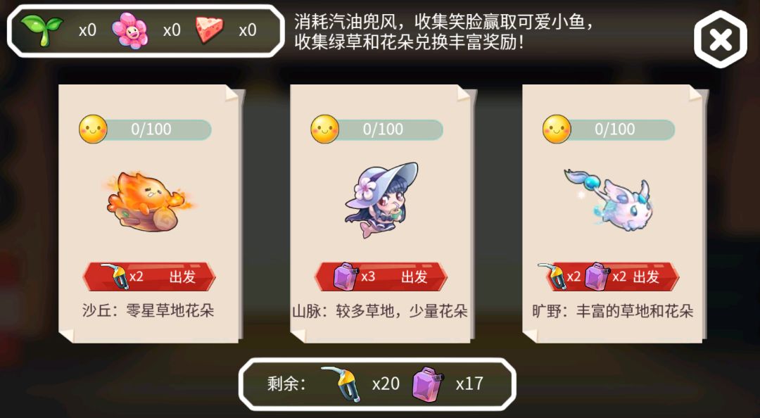 点击发光问号前进,过程中收集绿叶、花朵、奶酪积分。