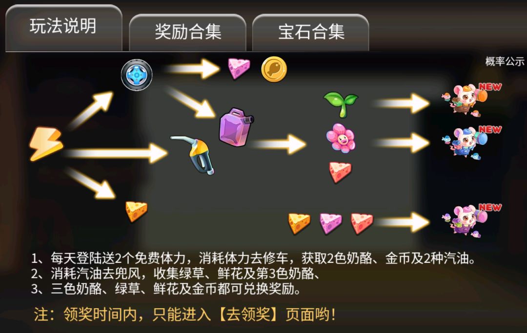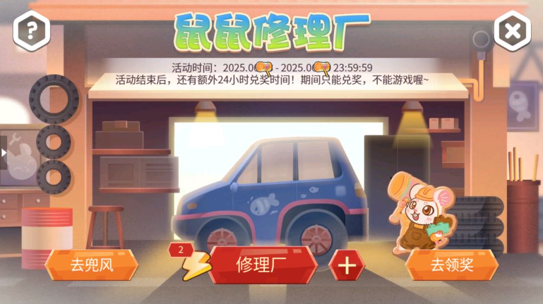 1、本活动分为三部分:修理厂、去兜风、奖励兑换;