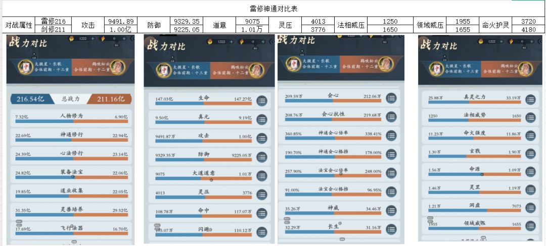 先上属性对比图,本期邀请的是我们来至玄天幻域的松云,也是我们区开始匹配以来的老对手老盆友。属性图如下,由于合体期战力提升很快,我跟松云算是正儿八经的同氪度同战力,由于培养的侧重不一样,属性可以说被单方面碾压。又是体系克制的情况下,战斗会是一边倒么。
