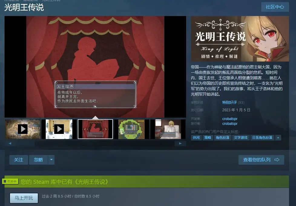 Steam特别好评+免费游戏《光明王传说》,通关测评。