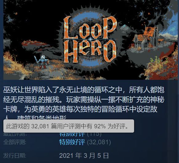 《Loop hero》是一款诠释了独立游戏锐意创新精神的佳作——也许还没有到开创一个类型的高度,也没有足够丰富的内容,但是足够的有趣,这是我玩到的最有趣的独立游戏之一,也推荐对肉鸽策略这个类型有爱的玩家来尝试。