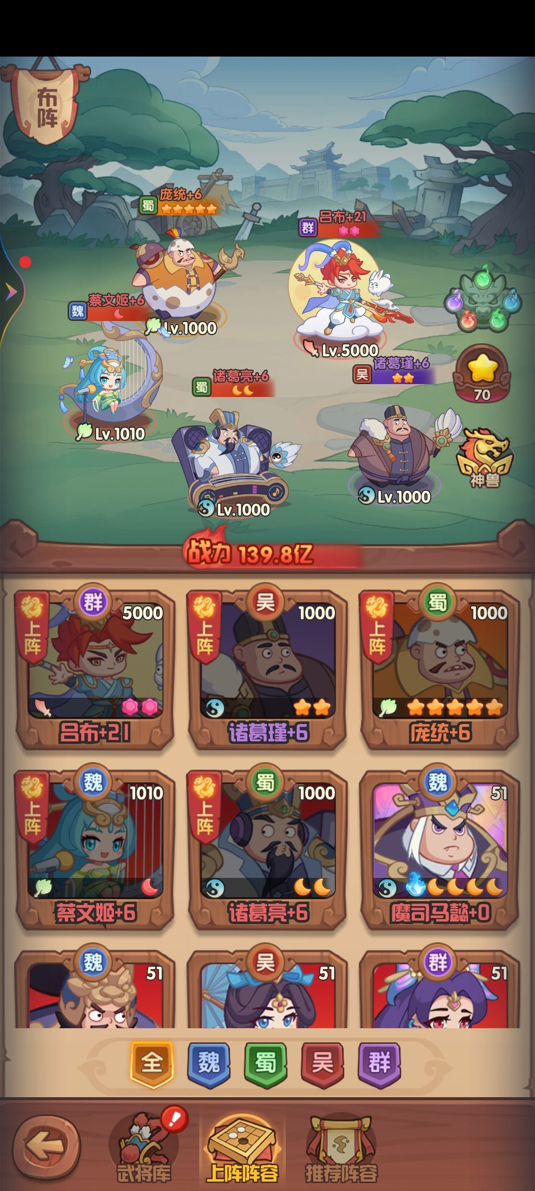 前期这个吕布阵容最适合打主线推关很快尽量买自动点击的小鸡炖蘑菇加速推线不会在前期落后。