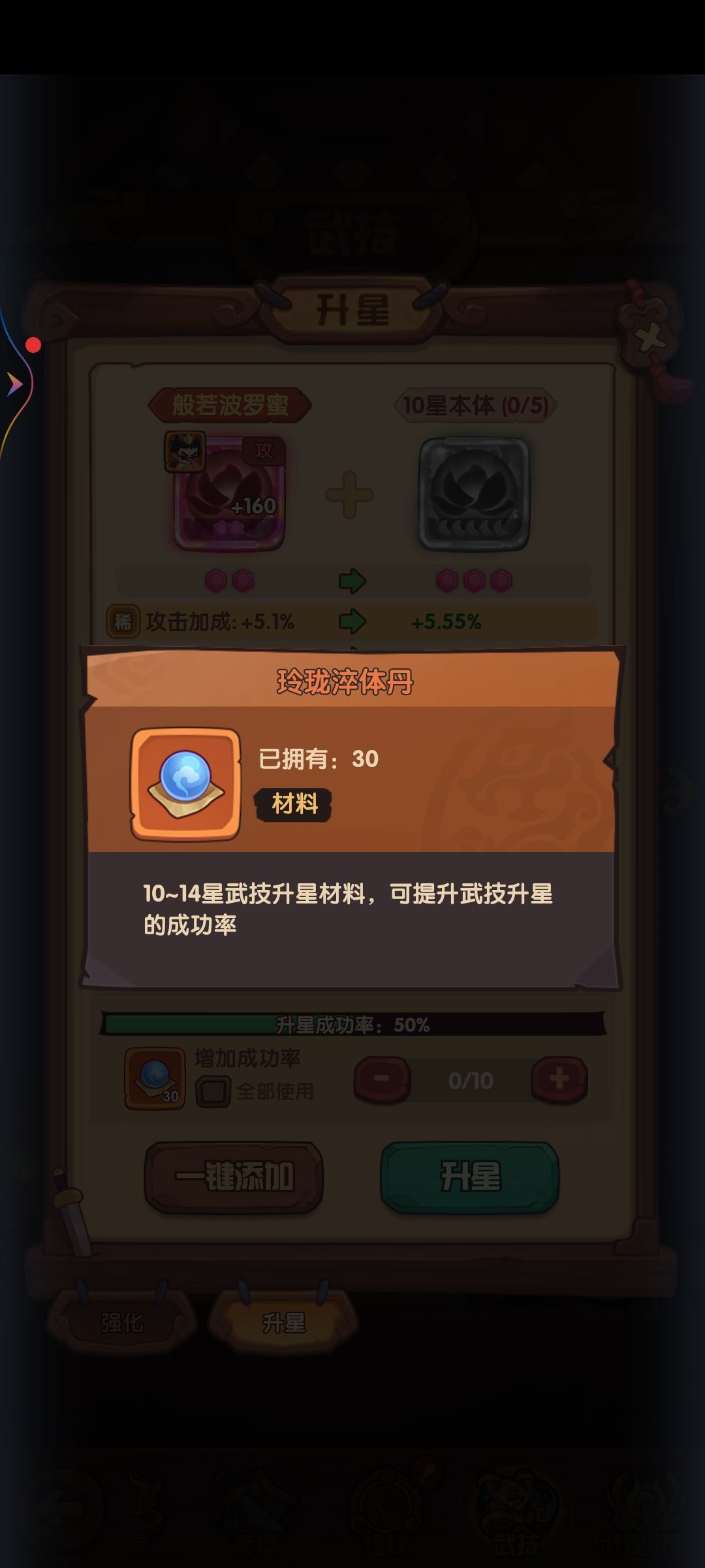 武技升星一定要把成功率点满不然他会给你一个惊喜。