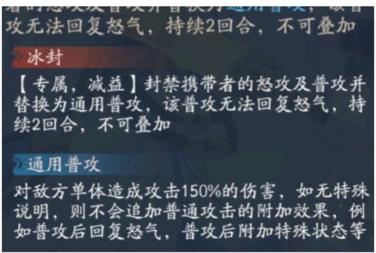 冰封:不给怒攻,可以通用普攻,是减益;